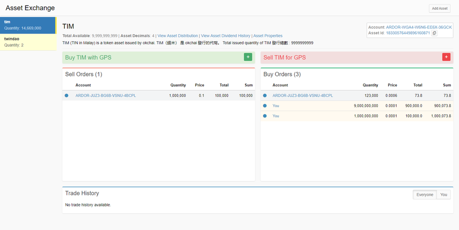 在 NXT 和 Ardor-Ignis 的兩個發行 Token 功能上,我分別發行了幾個獨一無二的 Token,主要是要霸占 TIM 和 TIMAH 的同名註冊,避免有心人混淆視聽。在區塊鏈註冊任何名字,只要符合條件,系統是不理冒名或相似名字的註冊。